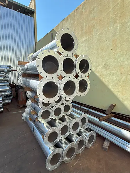 Tubos galvonizados com flange e tubos de reposição de parte área de pivots.
