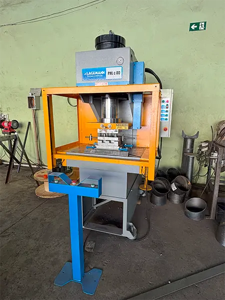 Contamos com uma prensa hidráulica de alta performance, ideal para realizar furos e perfurações técnicas em cantoneiras e chapas metálicas com agilidade e exatidão. Uma solução pensada para quem precisa de eficiência no corte e padronização na produção.